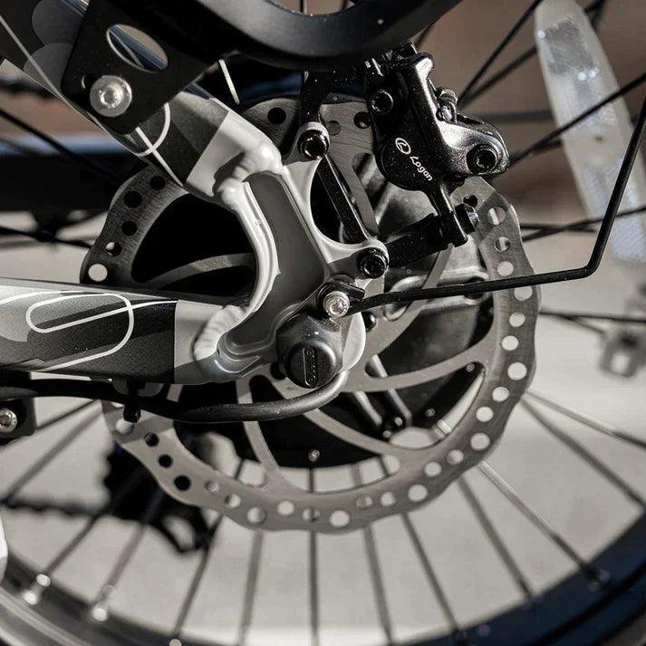 Stop quickly with large 180mm dual hydraulic disc brakes. We’ve added motor cutoff capabilities for added safety.