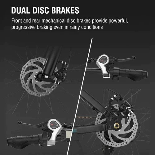 Powered by a robust 48V 750W brushless motor, this electric mountain bike provides strong acceleration and a top speed of up to 15 mph unlockable, making it ideal for both city rides and challenging terrains.