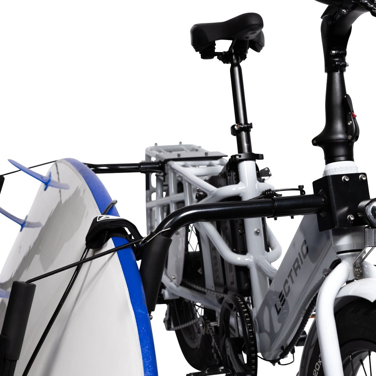⚠️ Warning: Adding weight to the side of a bike can make it more difficult to control. The board holder may contact the ground if leaned over too far.