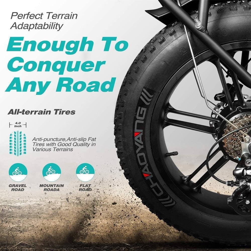The soft leather seat and fat tires make you feel comfortable on your riding trips. The foldable design is convenient for your camping or picking up in your car. Headlight and taillight make you no worries about riding at night.