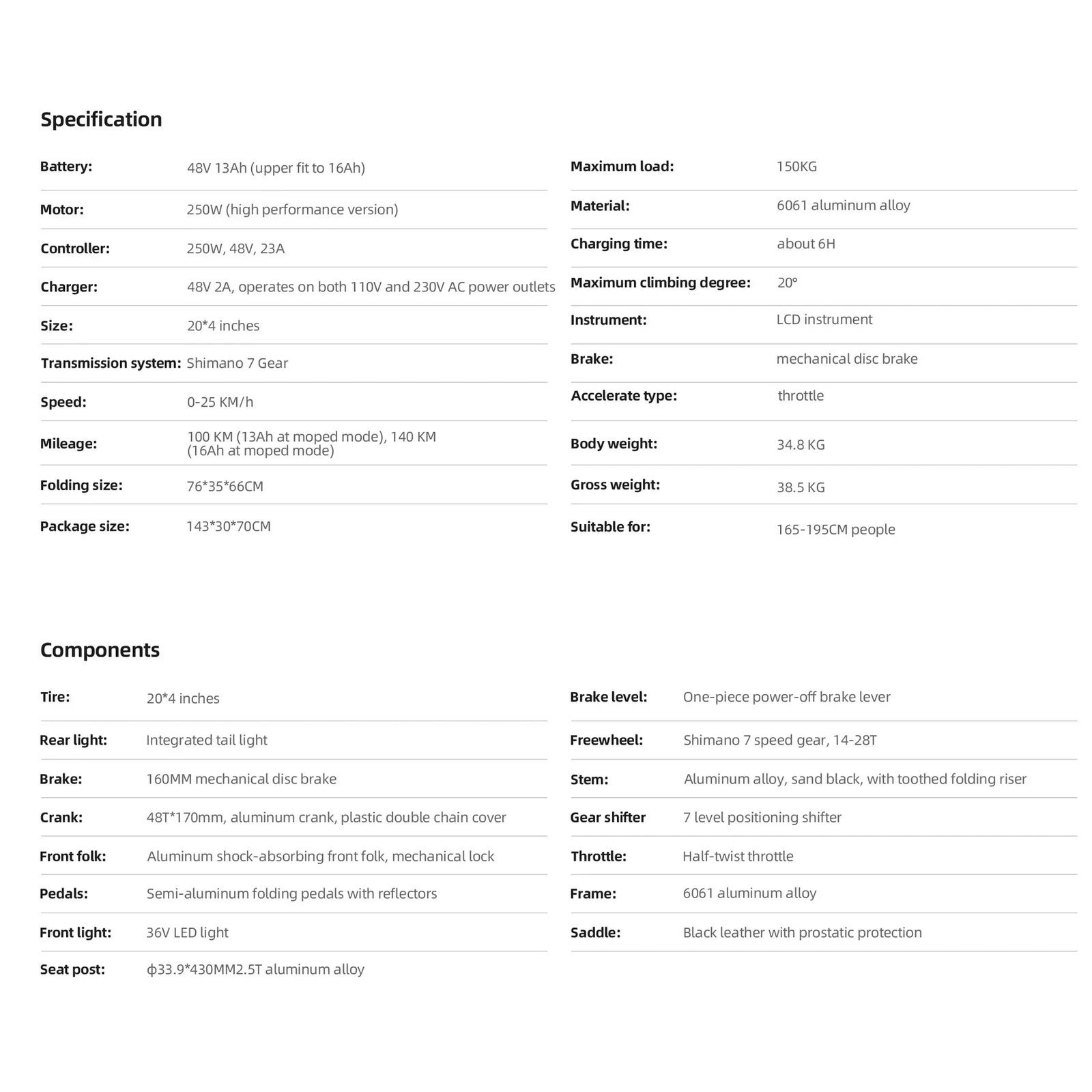 - 48V 13Ah Lithium Removable Battery (upper fit to 16Ah)
