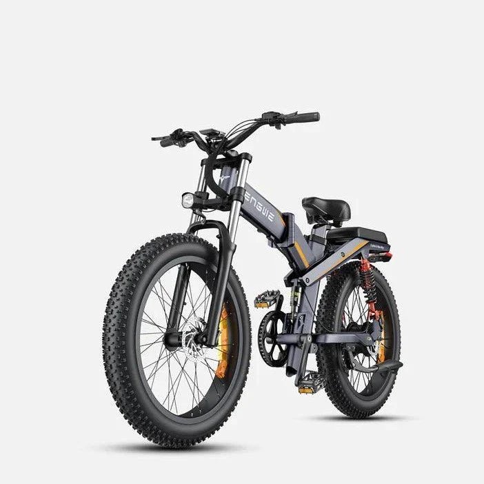With 1200W max power, dual batteries, dual suspension, and fat tires, you can conquer all terrains with ENGWE X24. Hydraulic disc brakes and 8-speed Shimano gears also offer you a safer and more comfortable ride. They are making it easy to cover both city commuting and off-road riding.