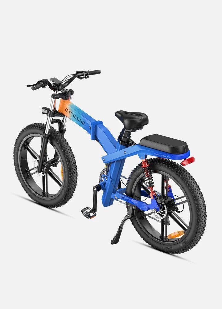 With 1200W max power, dual batteries, triple suspension and motorcycle level fat tires, you can conquer all terrains with ENGWE X26. Hydraulic disc brakes and 8-speed Shimano gears also offer you a safer and more comfortable ride. Making it easy to cover both city commuting and off-road riding.