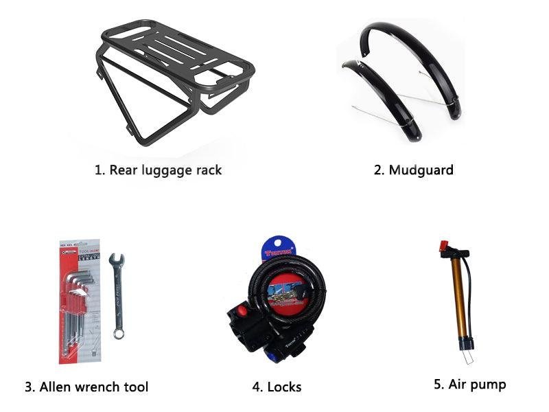 This new and upgraded electric bike is equipped with a comfortable, spacious and sturdy aluminum rear rack, which is very suitable for riding with your lovely pets or sending your relatives and friends. Also handy for carrying all your essentials, whether you’re heading out for a picnic or heading home from get off work! All-inclusive fenders will protect you from the elements, rain or shine.